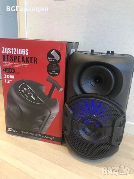Безжична и преносима колона- предлага се с безжичен микрофон и дистанционно управление. Размерите на колонката са 80х35х41 сантиметра. Здравият корпус е изработен от висококачествени материали, които показват висока устойчивост на повреди като удар и натиск Този високоговорител е с качество на излъчване. Има мощен звук за тържества и партита, особено в открита и претъпкана среда - мощният 12-инчов драйвер на тази част на кутията с изходна мощност от 2400 вата все още има вътрешно осветление при възпроизвеждане на музика, LED дисплей и панел с физически бутони за управление Музика; Регулиране на силата на звука и светлината... На вграденото тяло има и дистанционно управление, за да могат тези настройки да се извършват дистанционно от потребителя. Входът включва USB-AUX-BLUETOOTH-SD cart. Страхотно качество на звука - ZQS12106S Portable Party Speaker е проектиран за най-добрия звук в музиката, с чисти високи и силни баси. Този високоговорител идва с безжичен микрофон, може да се използва като караоке машина, музикален високоговорител, PA система, китарен усилвател и така нататък...