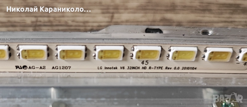 Лед ленти - 2бр. х 48 SMD диода,със алум.радиатор - 705мм - / 3660L-0386A lg innotek v6 32inch hd l-tipe и lg innotek v6 32inch hd r-tipe/ - цена 12 евро.общо.