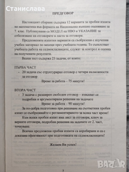 Сборник пробни изпити по математика за 7 клас → Обява 52027631