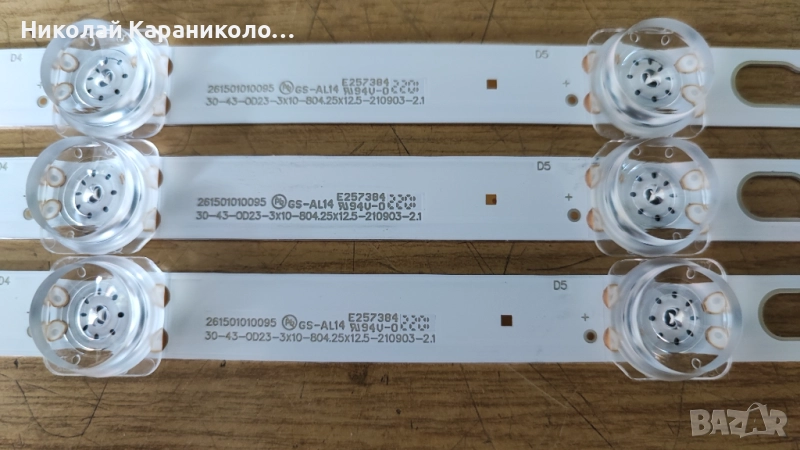 Лед ленти - 261501010092,30-43-0D23-3x10-804.25x12.5-210903 3 ленти х 10диода ,805мм - цена 10 евро.броя.Общо 3-те 25 евро.