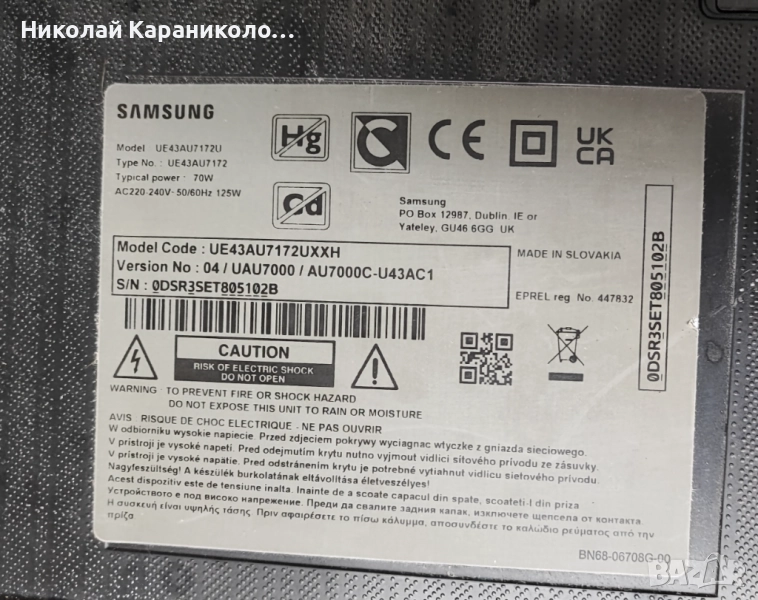 Продавам Power-BA43FA130,Main-KANT_SU2E_AU7000/BN9650990D,от тв SAMSUNG UE43AU7172U