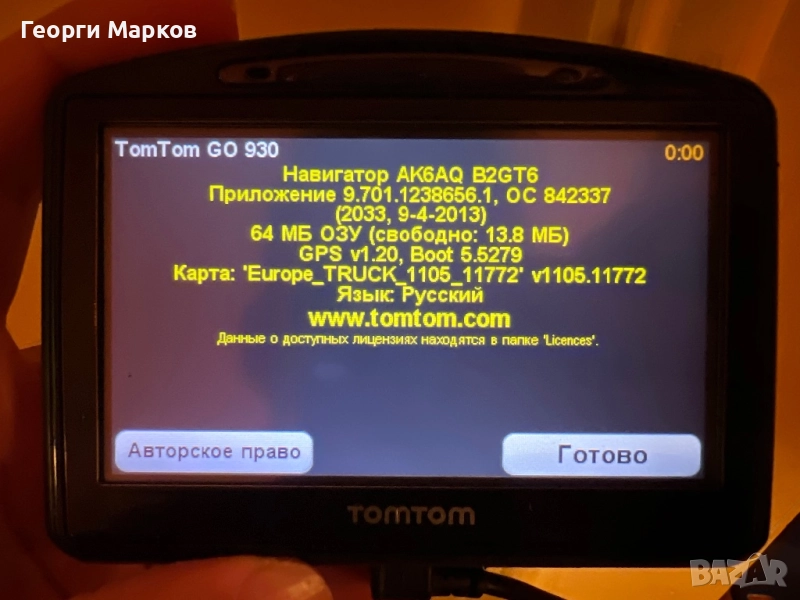 Навигация TomTom Europe Truck, със зарядно и стойка за стъкло, 35 евро.