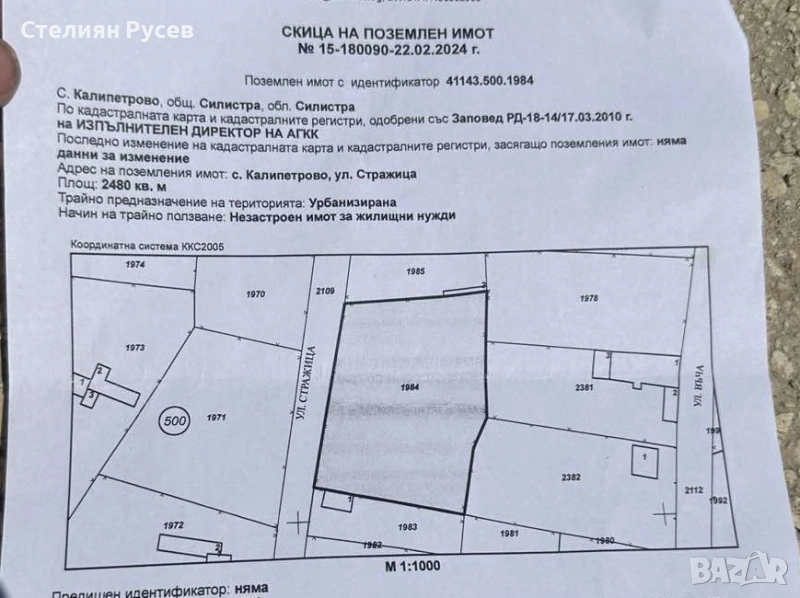 ПИ 41143.500.100 област Силистра, община Силистра, с. Калипетрово, п.к. 7500, ул. Стражица
