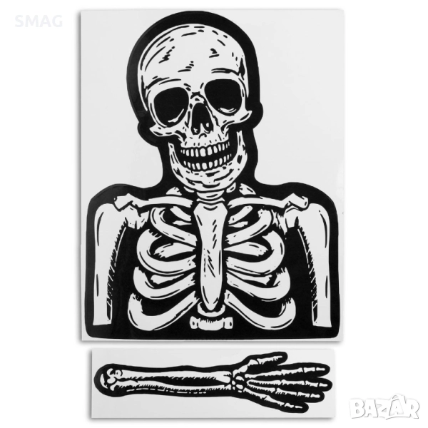 Уникален стикер за автомобилна чистачка с дизайн на скелет – идеален за Halloween / Хелоуин украса на колата. Поставете тялото на скелета върху задното стъкло, а ръката – върху перата на чистачката, и при движение ще създадете забавен, но и малко страховит ефект, който няма да остане незабелязан на пътя.