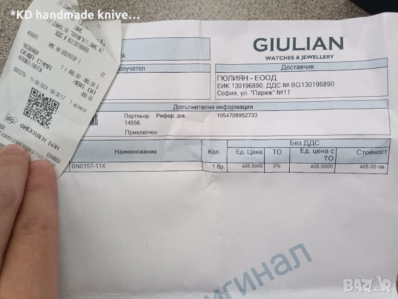Часовника съм го закупил от Гюлиян на 11.09.2024г. Без следи от употреба. Крайна цена!