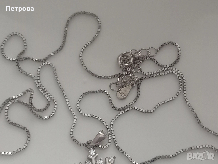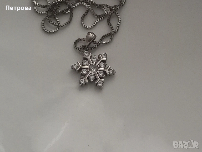 Сребърно колие снежинка с бели циркони → Обява 52029158