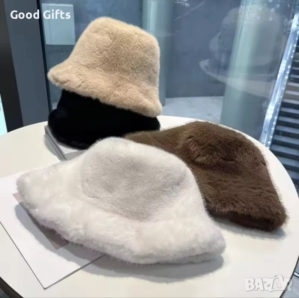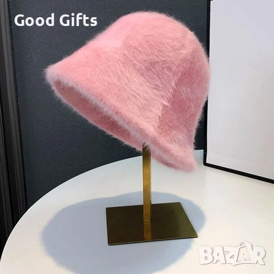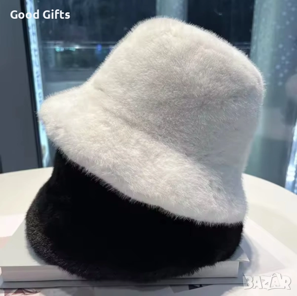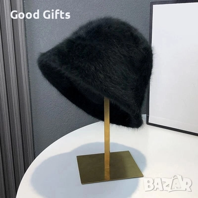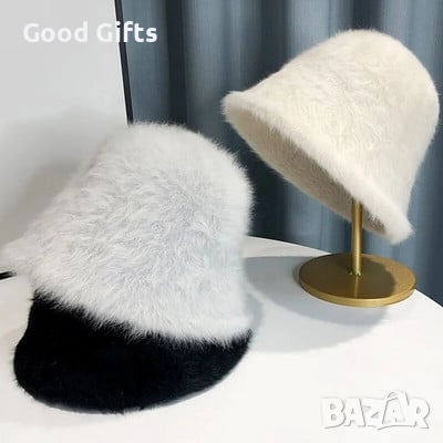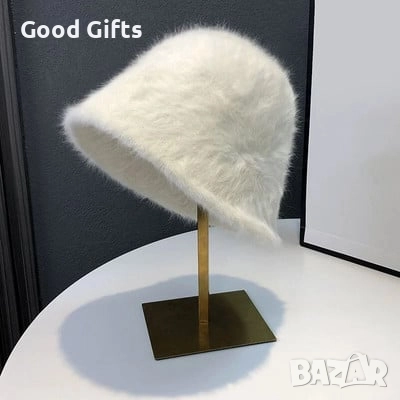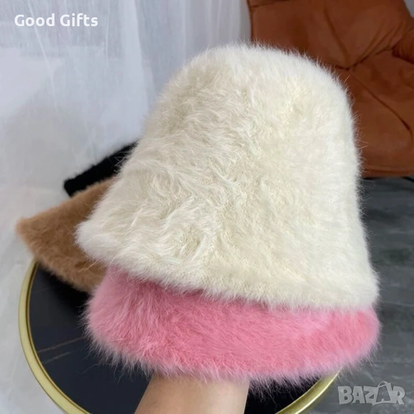 Елегантна дамска зимна шапка с мек и пухкав ефект, съчетаваща комфорт и изискан стил.