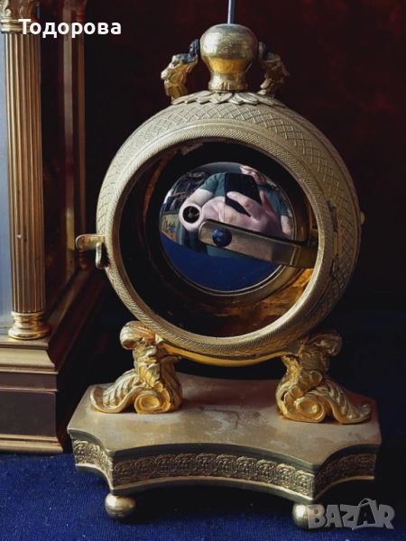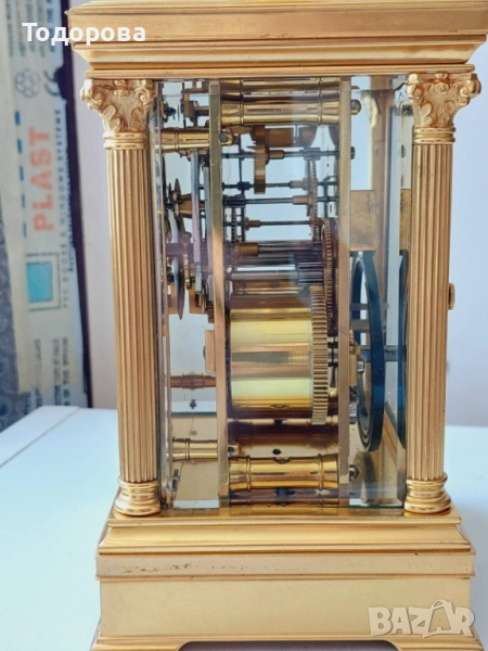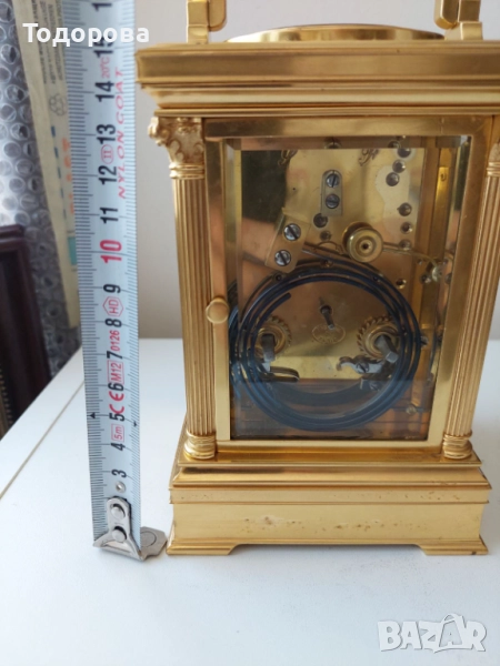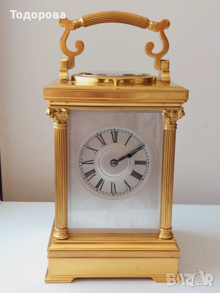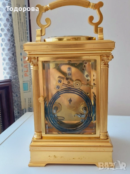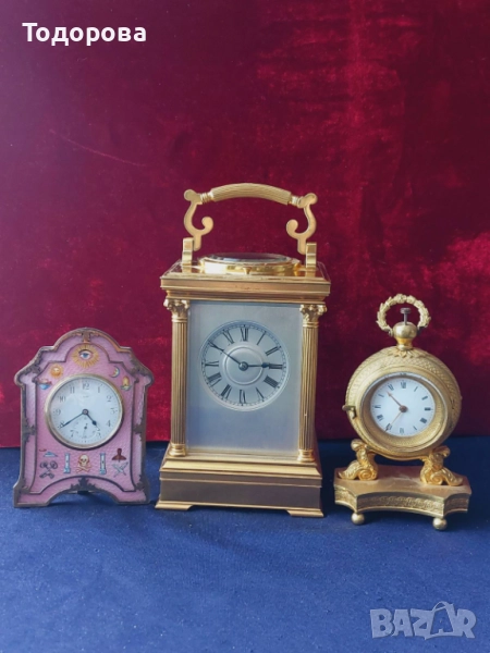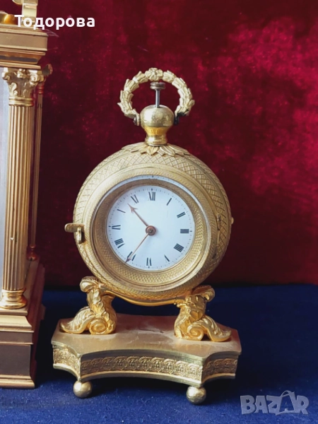 Здравейте,днес реших да ви зарадвам с един изключително рядък часовник!Както съм написал в заглавието,часовникът е настолен четвърт репетир!Интересното е че е с машина на джобен(Verge fusee) с две вериги,едната е за гонга(репетира) а другата за работния механизъм на машината, от периода 1780 година.Корпусът е с 22 каратова оригинална позлата,която е изключително дебела,м/у 0.2-0.3 от милиметъра.Най-важното.... часовникът работи и ви показва и времето(профилактиран смазан механизъм.Размер-височина 13 см,ширина в основата 8 см,облата част 7 см.Циферблат без забележки,като нов.Наслаждавайте се!Цена 4200 евро.