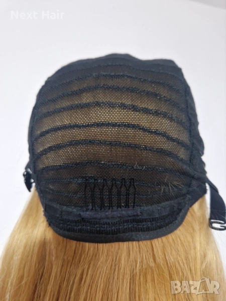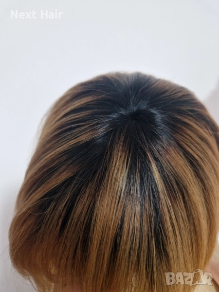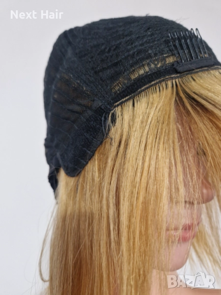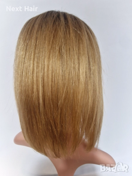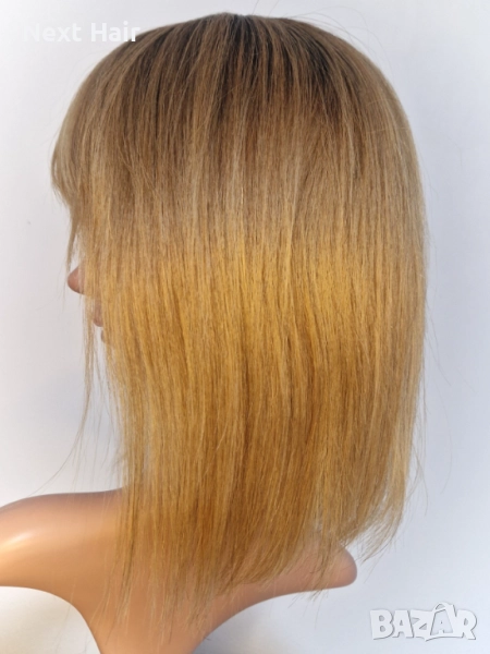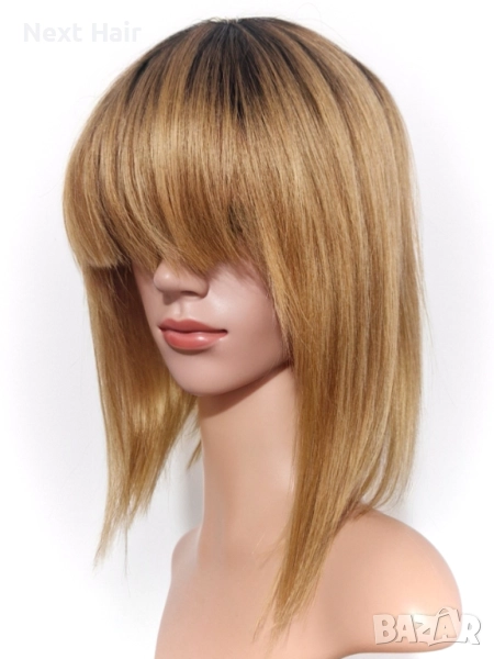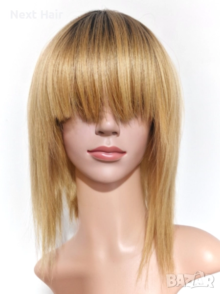 33 см естествена златисто руса омбре перука с тъмни корени и бретон → Обява 52029639