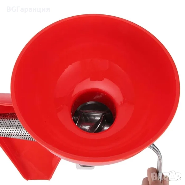 Ръчна машинка за пасиране на домати, подходяща и за други меки плодове или зеленчуци. С нея лесно ще приготвите домашен доматен сок, пюре или сосове без семки и люспи.