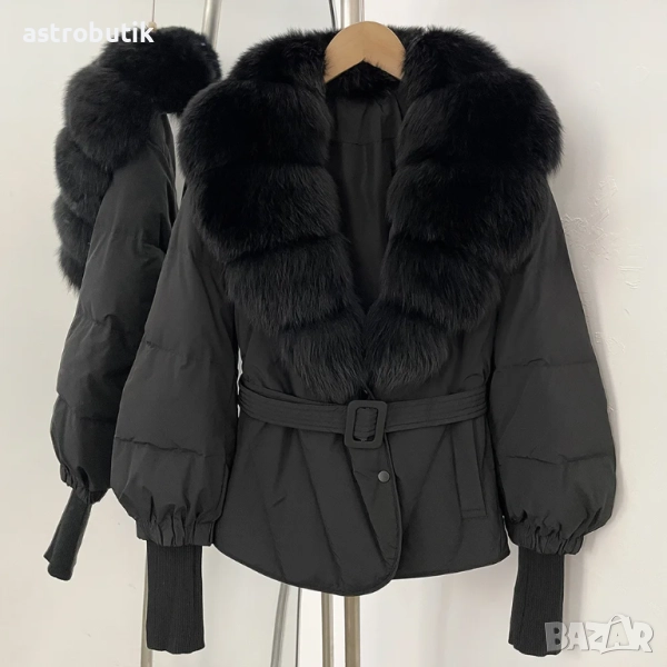 Богата яка от естествен косъм/лисица/.Подвижна/може да се сваля/