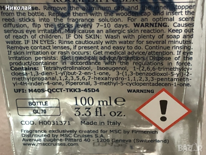 Опаковка:Елегантна стъклена бутилка с минималистичен дизайн и логото на MSC