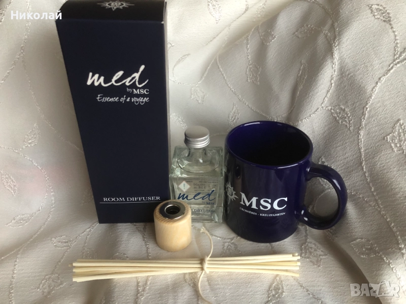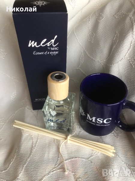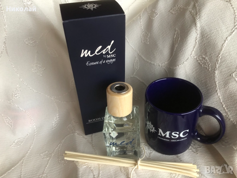 Ароматен дифузер с пръчици MED by MSC Essence of Voyage (ароматно масло + естествени ратанови пръчки) + подарък чаша за кафе/чай MSC