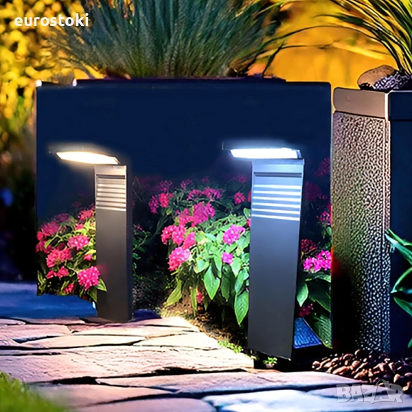 Calflux Комплект от 2 броя соларни лампи за външна градина, за пътеки, морава. Водоустойчиво осветление, 2 режима, Устойчива на атмосферни влияния.