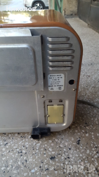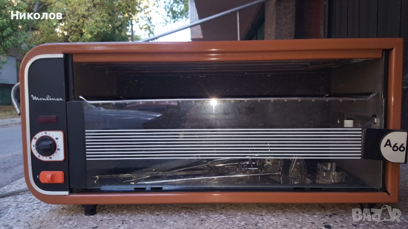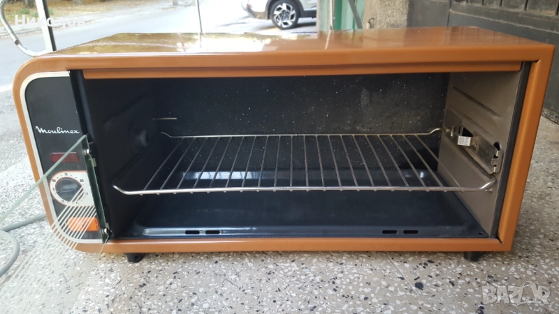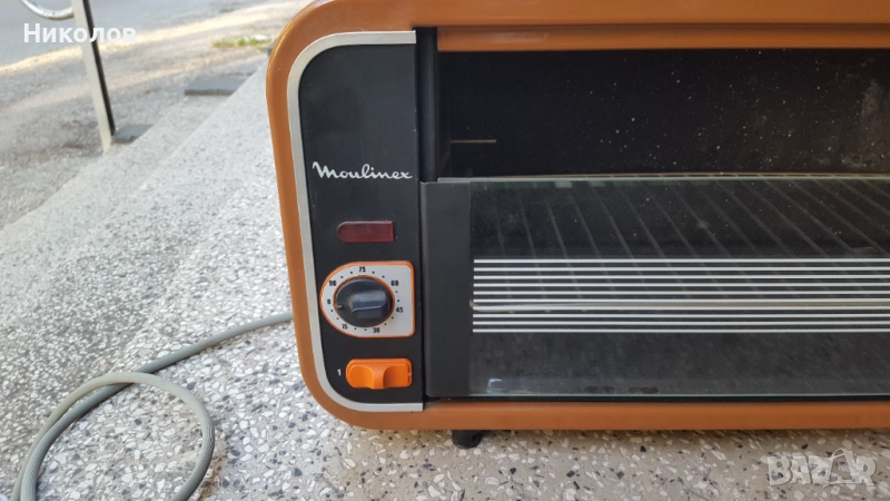 Печка Грил марка" Мулинекс" произведена в Франция.Състоянието е видимо ново!Мощността е 1700 вата,като всичко работи/нагреватели двете степени и грил въртене/Размери: Ш 60см., дълбочина 24см.,височина 28см.Печката е докарана от Германия без кашон към нея.Забележка : липсва едното задно краче на което стои печката,което е подменено с друго различно от оригиналното!