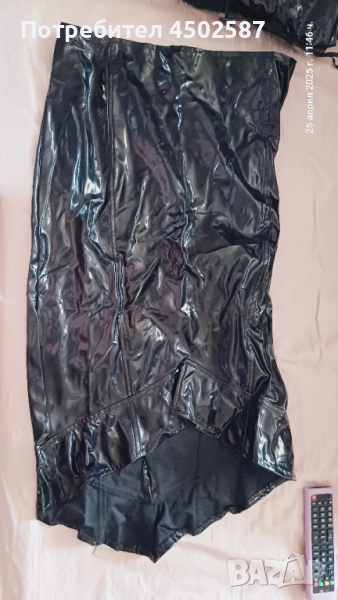 Черен готически латексов костюм, състоящ се от