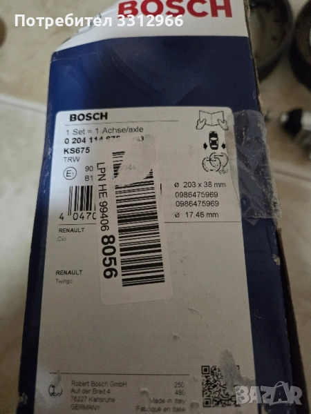Чисто нов Спирачен комплект, барабанни спирачки BOSCH 0 204 114 675 за RENAULT CLIO, TWINGO, снимка 1 - Части - 52031158 Чисто нов Спирачен комплект, барабанни спирачки BOSCH 0 204 114 675 за RENAULT CLIO, TWINGO, снимка 2 - Части - 52031158 Чисто нов Спирачен комплект, барабанни спирачки BOSCH 0 204 114 675 за RENAULT CLIO, TWINGO, снимка 3 - Части - 52031158 1/3