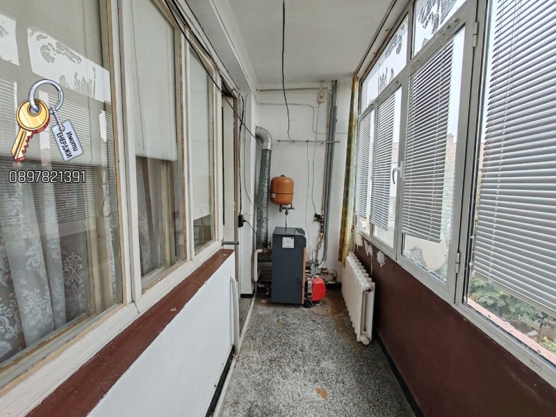 Продава се петстаен апартамент 117 кв. м., таван 26 кв.м. и маза 7,5 кв. м. с добро местоположение. В близост има хранителни магазини, детска градина, спирка на градски транспорт. Разпределение: Три спални, хол и кухня с бокс, баня, тоалетна отделно, коридор и три тераси. Едната спалня е преходна от хола. Жилището е подходящо както за живеене, така и за инвестиция. Тавана е съставен от две стаи намиращи се до санитарен възел, от който може да се вземе вода и канал. Има възможност за закупуване на гараж на отделна цена от 25 000 .