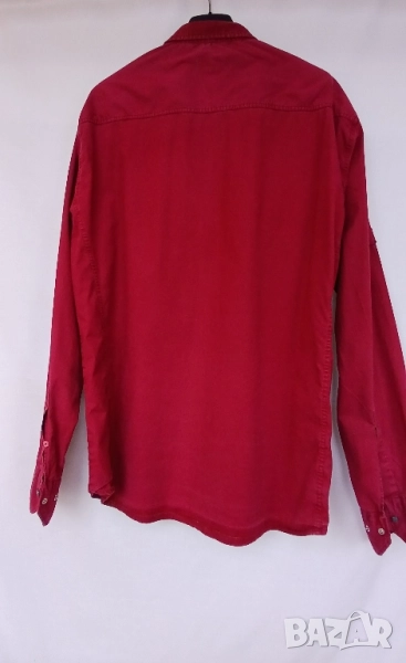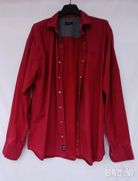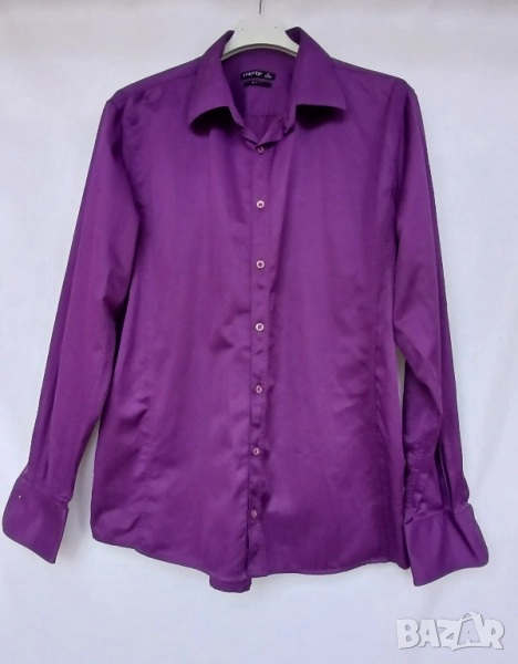 2. Вишнева луксозна мъжка риза от памучна качествена материя с дълъг ръкав, номер 52 и обиколка на гърдите 114 см. Ризата има лека еластичност облечена е само два пъти при повод и не намира приложение. Като нова е.