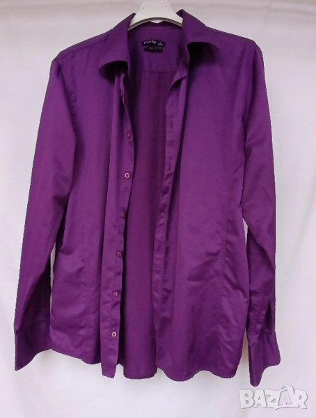 1. Тъмно лилава луксозна риза от копринен сатен вталена с дълъг ръкав. Номер XL. Нова. Обиколка на гърдите 112 см. Няма еластичност. Цена 20 лв.