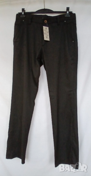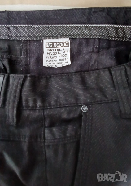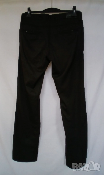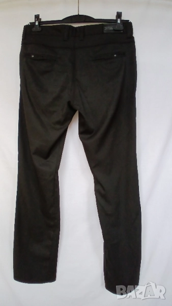 3. Мъжки стилен черен панталон с дискретно ситно рае изработен от фин качествен плат с размер L равен на номер 34. Турско производство. Нов. Обиколка на талия 90 см, обиколка на ханш 108 см, дължина на панталона 114 см, дължина на чатала 90 см. Панталона има еластичност.