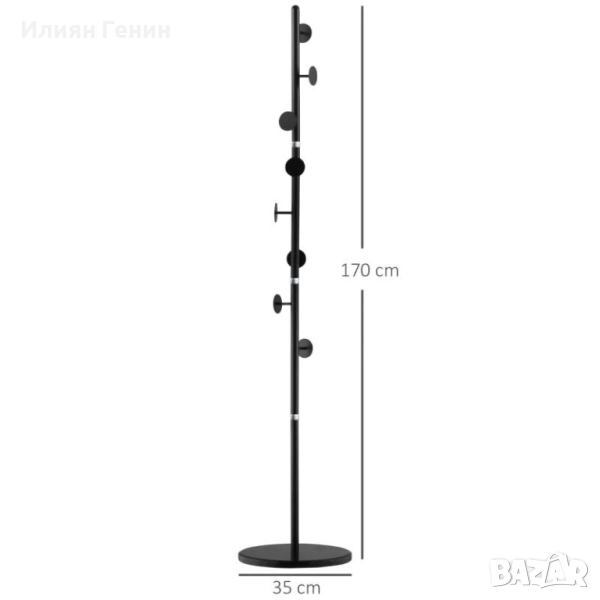 Закачалка за дрехи HOMCOM, 4 пръта и 8 куки, мраморна основа, стоманена рамка, 35 x 35 x 170 см, черна - 100.00лв.