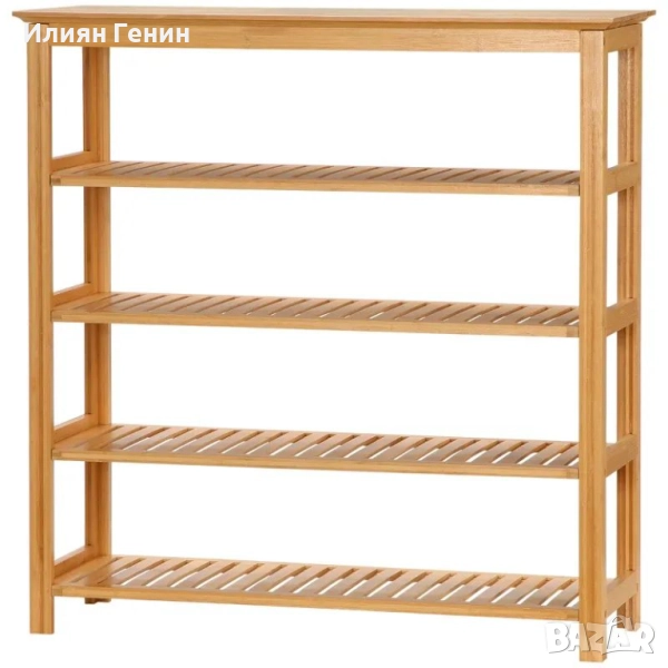 Стелаж за обувки с 4 рафта, бамбук, летви, до размер EU 45, естествен цвят - 100.00лв.