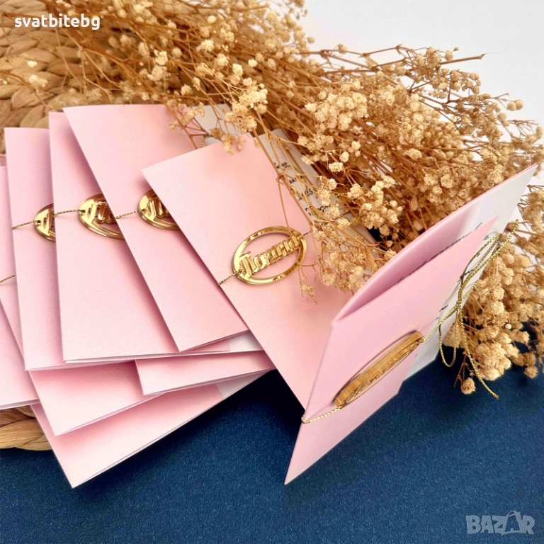 Всяка покана може да бъде персонализирана по ваш избор – различни цветове и текст според темата на вашето събитие. Ние ще създадем покани, които ще впечатлят вашите гости и ще превърнат сватбата ви в незабравимо изживяване.