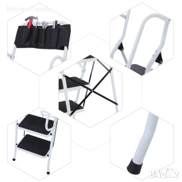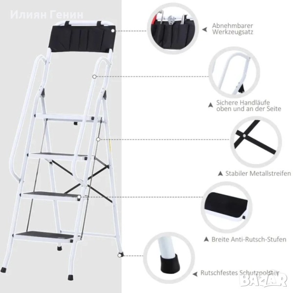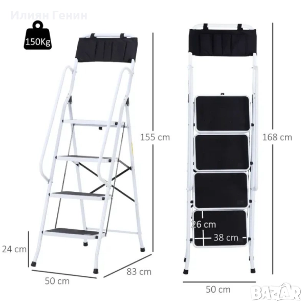 стълба HOMCOM, включително държач за инструменти, парапет, 50 x 83 x 155 см, черна + сребриста - 100.00лв.