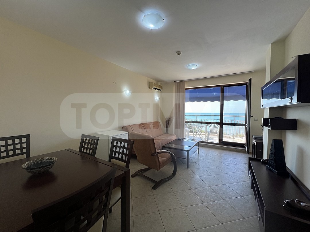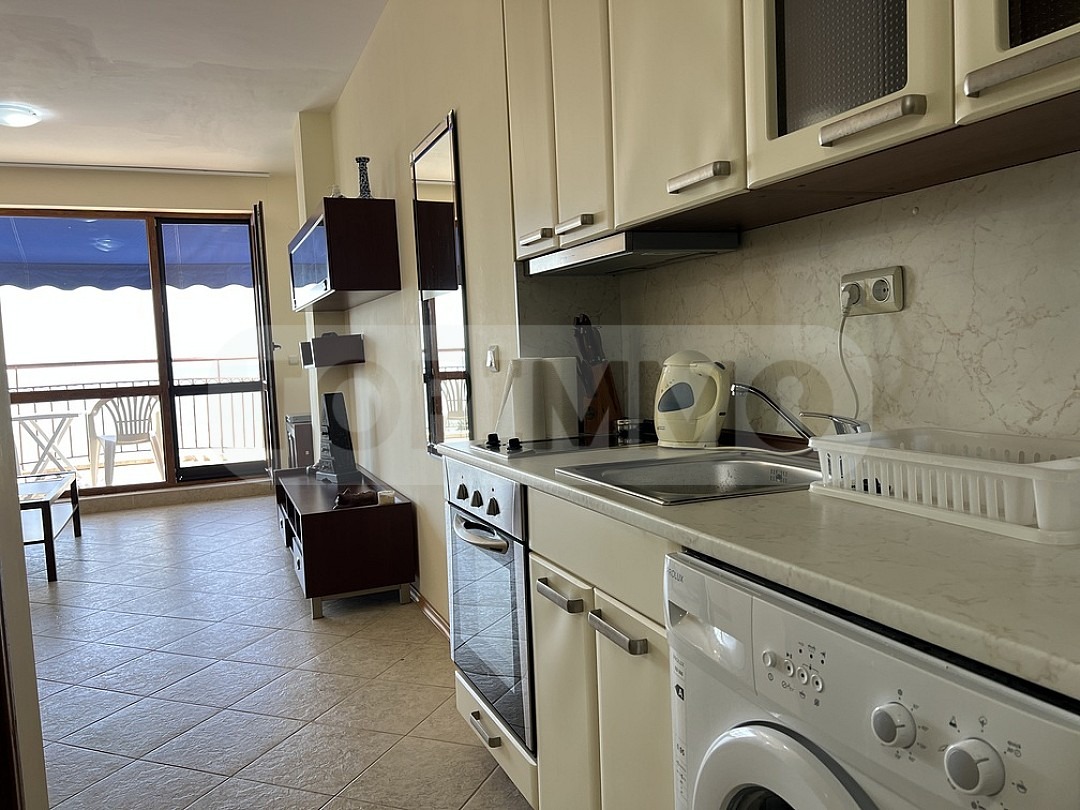С площ от 61.4 кв.м. чиста площ и 12,19 кв.м. идеални части от общите части и прилежащо складово помещение от 5,6 кв.м. Апартаментът е напълно обзаведен и се състои от дневна с кухненска част и тераса с изглед към морето, спалня с балкон и баня с тоалетна. Имотът се намира на четвърти етаж и е част от сграда с и контролиран достъп.
