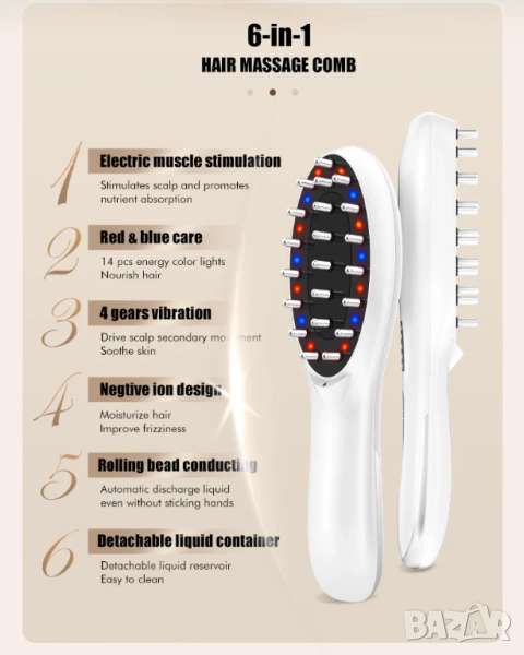 2. ЕМС миктотокови високочестотни вибрации масажират скалпа, стимулират регенерацията на клетките , насърчават растежа на косата и нежно се грижат за здравето на косата.