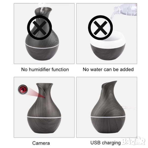 WiFi камера: Това устройство изглежда като ароматерапевтичен овлажнител, но няма съответната функция и може да се използва само като камера за наблюдение