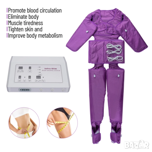 на интензивност, това устройство подобрява кръвообращението, облекчава умората, подобрява метаболизма и насърчава детоксикацията. Ергономично оформеният костюм осигурява перфектно прилягане, а компактният контролен блок е снабден с предпазни средства и лесен за използване интерфейс, което го прави надежден избор за домашна употреба.