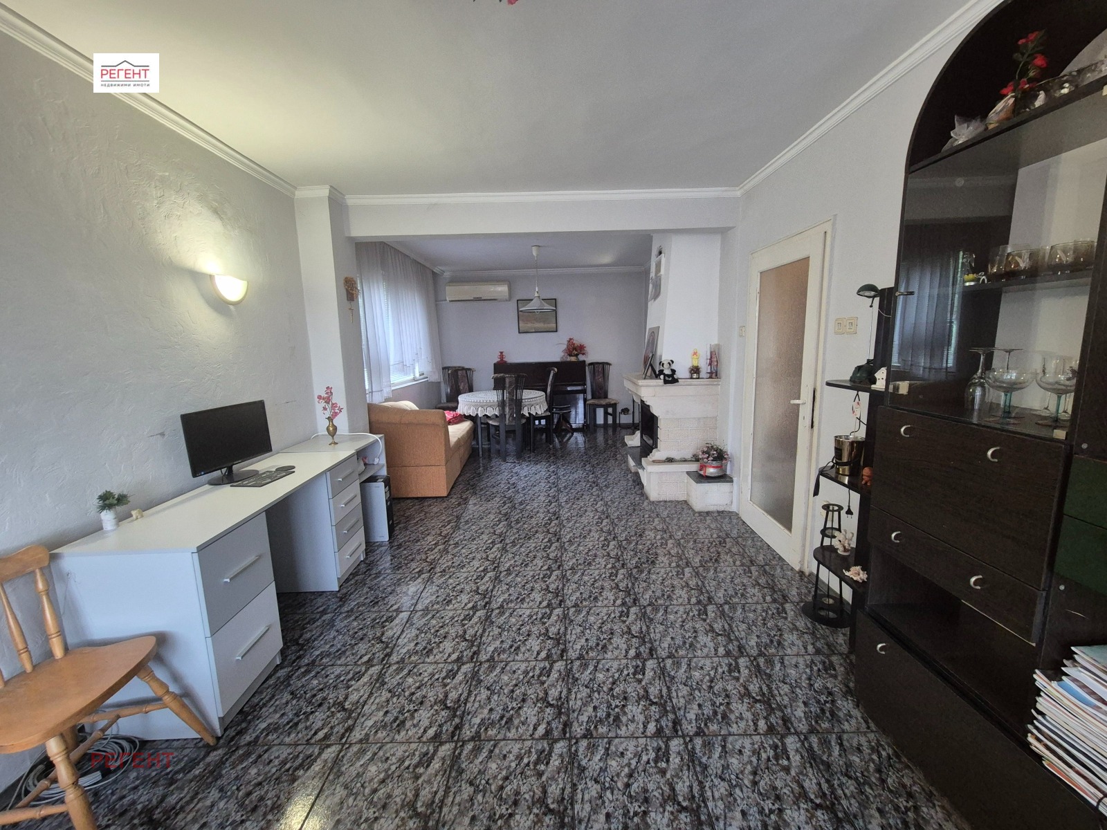 Предлагаме на Вашето внимание много просторен апартамен, разположен на нисък етаж, в сграда, намираща се на пешеходно разстояние от центъра на града. Площта на жилището е функционално разпределена в отворен план кухня с трапезария и всекидневна с две прилежащи тераси към това пространство, две спални, едната от които с тераса, голяма баня с тоалетна и мокро помещение. Има положено подово отопление и допълнително изградена камина, внасяща уют. Апартаментът е подходящ за голямо семейство, предоставящ възможност всеки от членовете да намери своето кътче на уединение в него. Прилежащи помещениея са една маза, две тавански стаи, всяка от които от по 10 кв.м. и гараж в подблоковото пространство с ток и вода в него.