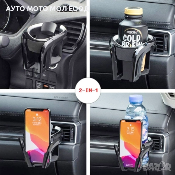 Универсална поставка за мобилен телефон и поставка за чаша за кола, този адаптер за поставка за чаша за кола 2 в 1 може да побере както телефон, така и чаши за напитки, спестявайки място в колата ви.