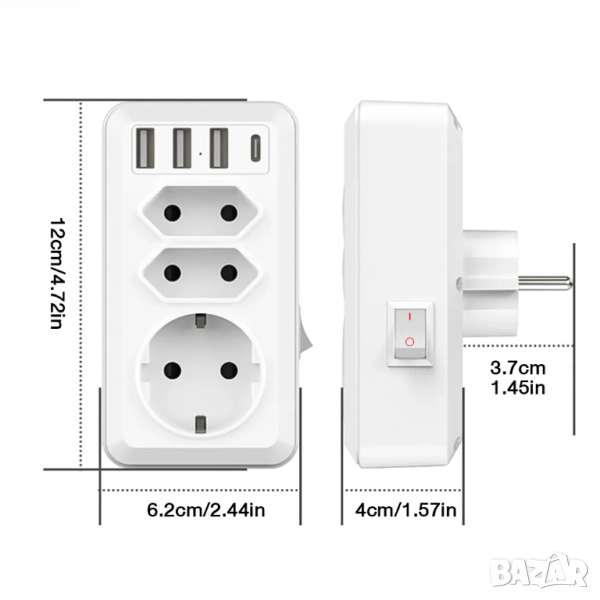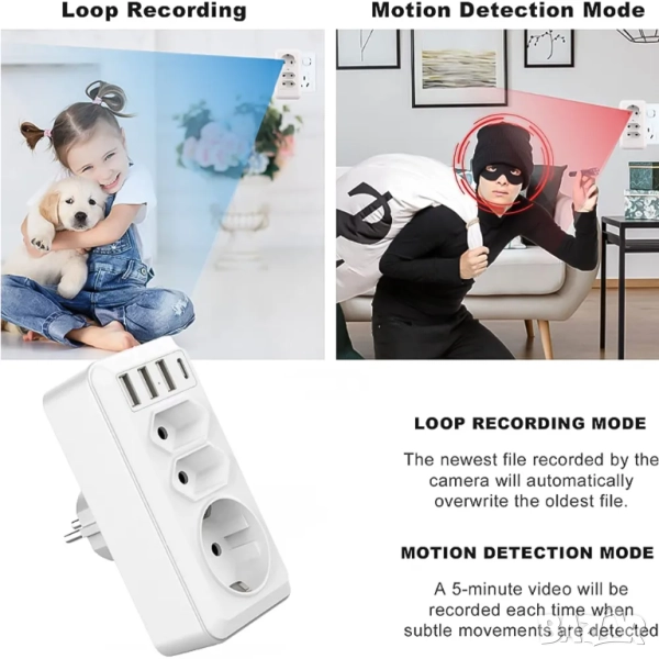 Скрита камера Wifi в разклонител, с USB и Type C, видеонаблюдение на живо, шпионска камера контакт с FullHD резолюция Многофункционален контакт – Това устройство има външен вид на контакт, който може да се използва като домашен контакт или микрокамера.