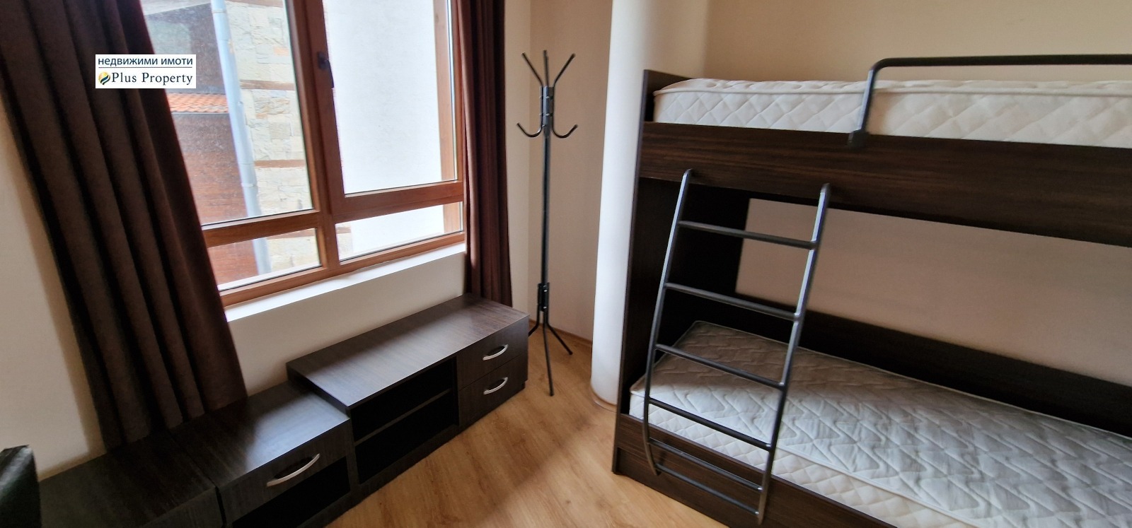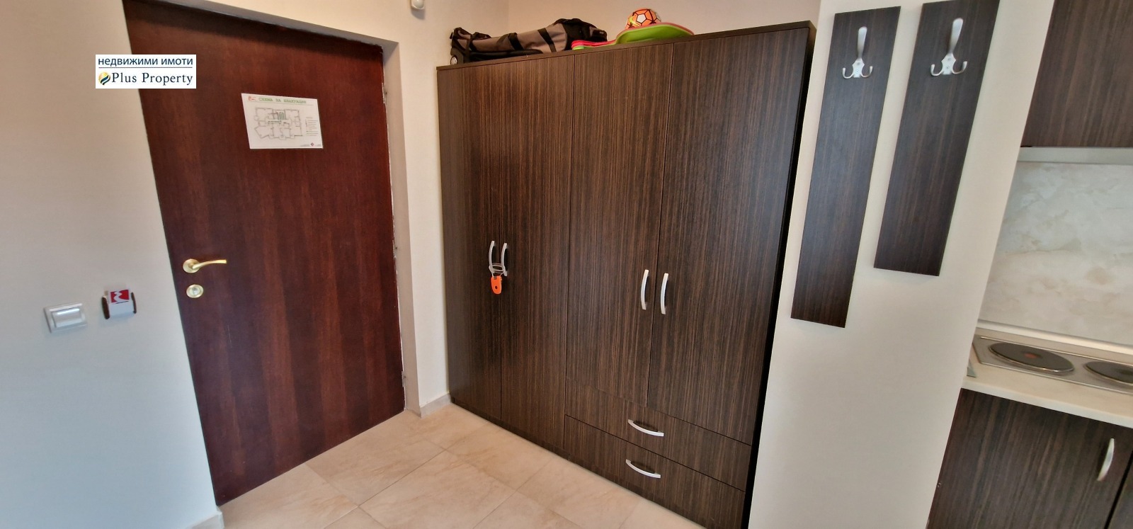 Жилището се състои от входно антре с голям гардероб,всекидневна/спалня с оборудван кухненски бокс с керамичен котлон, абсорбатор, хладилник, микровълнова печка и трапезария. Има двуетажно легло, разтегателен диван и масичка за кафе.От балкона се открива красива гледка към града. Банята е оборудвана с душ кабина,мивка,тоалетна и бойлер.