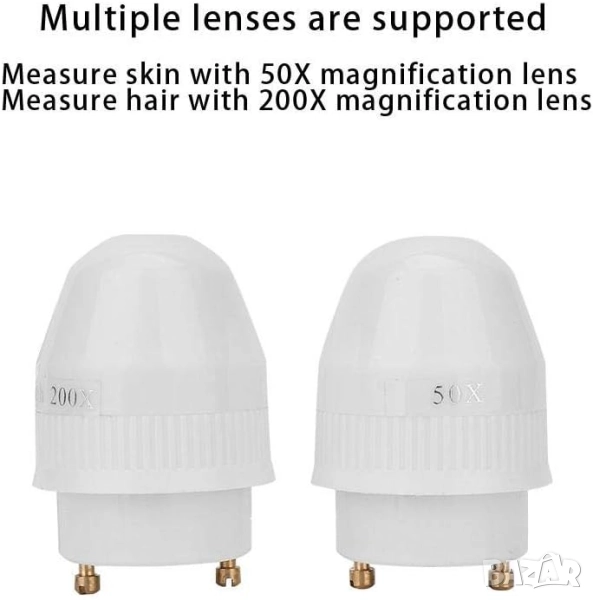 - Микроскоп за кожа със сменяеми лещи . Сменяемите лещи могат да откриват кожна мазнина, вода, пигмент, пори, еластичност, колаген и т.н. Използвайте 50X обектив за откриване на кожа и 200X обектив за откриване на коса.