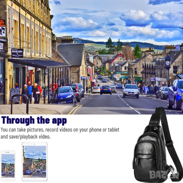 Мъжка кожена чанта със скрита камера, шпионска WIFI камера