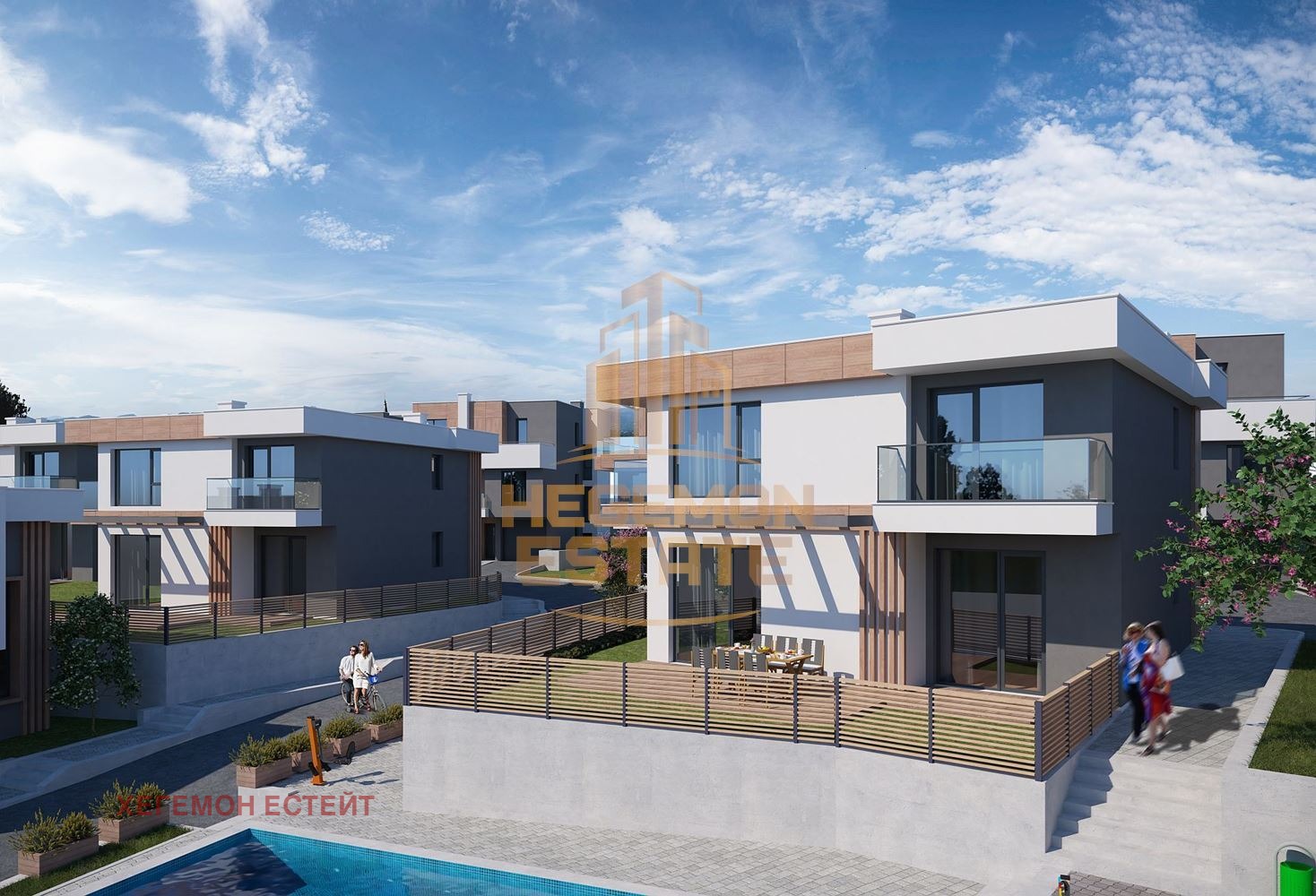 HEGEMON ESTATE предлага на Вашето внимание двуетажна къща с разгъната застроена площ от 217 кв.м. и дворно място от 354,58 кв.м., разположена в новостроящ се затворен комплекс.