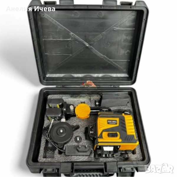 нивелир CASE32Тип лазер: 6 линии / 4 равнини (360° покритие)Работен обхват: до 35 мПрецизност: ±1 мм при 7 мВреме на работа: 12–16 часаБатерия: 3.6V 5000mAh Li-ion (презареждаема)Захранване: батерия или адаптер (включен в комплекта)Аларма при отклонение над 3°Възможност за заключване на лъча и работа под ъгълСтепен на защита: IP54 (влаго- и прахоустойчив)Размери на уреда: 130 х 80 х 135 ммРазмер на триногата: регулируема от 30 до 100 смКорпус: удароустойчив с гумени ръбовеМногофункционална чанта за инструменти KKL103 (Подарък)Материал: Оксфордски плат / Полиестер / PVC / ДенимНачин на носене: на кръста, на рамото или в ръкаРазмери: 16 х 60 смКапацитет: до 30 кг инструментиДопълнително окантяване: ДаРегулиране дължината на колана: Да