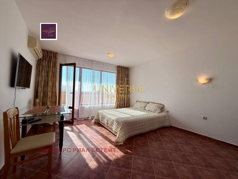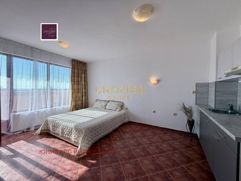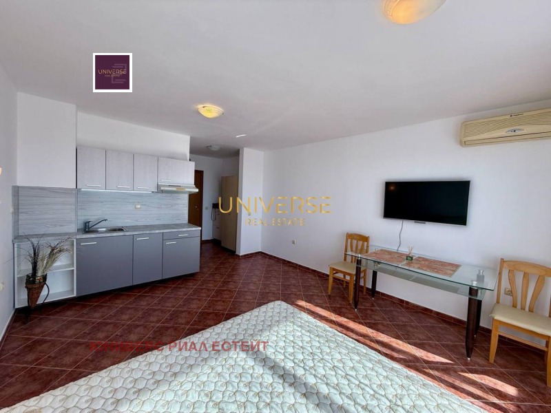 Предлагаме студио апартамент в комплекс в Кошарица. Комплексът се намира на 2 км от Слънчев бряг и на 1 км от Lidl. Разполага с открит басейн, бар край басейна и безплатни шезлонги. Апартаментът е оборудван с нови мебели и уреди, климатик и телевизор с плосък екран. В съседната сграда се намира супермаркет. Автобусна спирка с връзки до Слънчев бряг се намира до комплекса. На разположение е безплатен паркинг. Има асансьор. Акт 16.#5018
