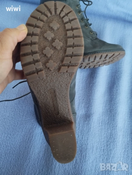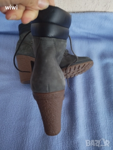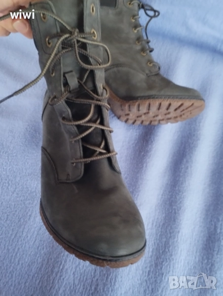 Ботите са обувани броени пъти в отлично състояние са.Мека естествена кожа. Сивосин цвят.Много удобни и комфортни. Номер 39 с дължина на стелката 25,5см.Височина на тока 6см.Цена 90см.Марка Timberland с мембрана която отблъсква калта,мокро и мръсотия са.