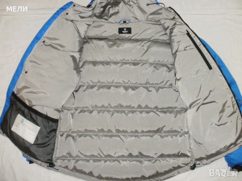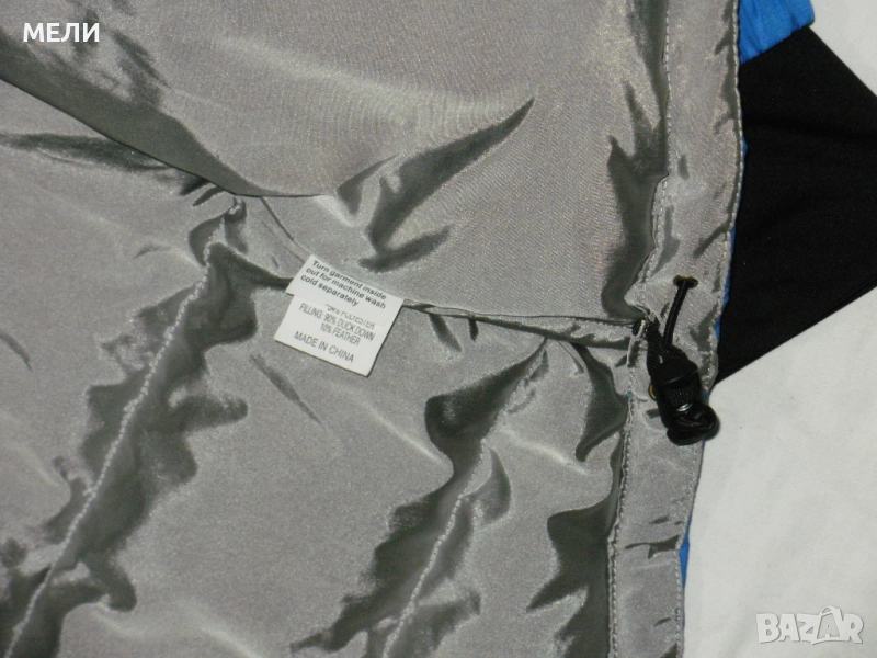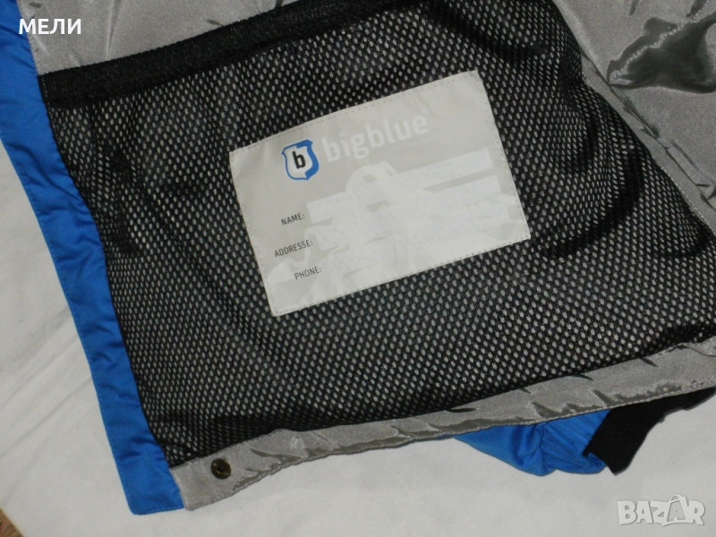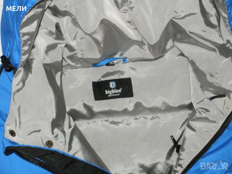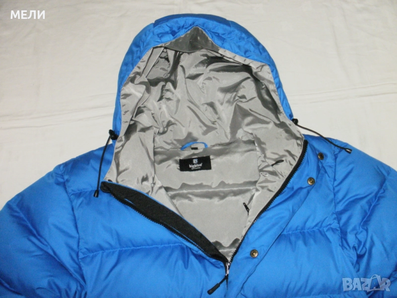 Якето е на BIG BLUE, само е пробвано, без забележки, направо си е ново. По номер е L. Цветовете са като на снимките, много свежо. Материята не пропуска дъжд и вятър. Пълнежа е дебел слой гъши пух (90/10) Закопчава се с цип и отгоре капси. Отпред има два джоба с ципове, има и два вътрешни. На качулката и долу има ластик със стопери. Маншета на ръкава е удължен с дупка за големия пръст, много удобно. Отпред е по късо. Много леко, меко и топло яке.