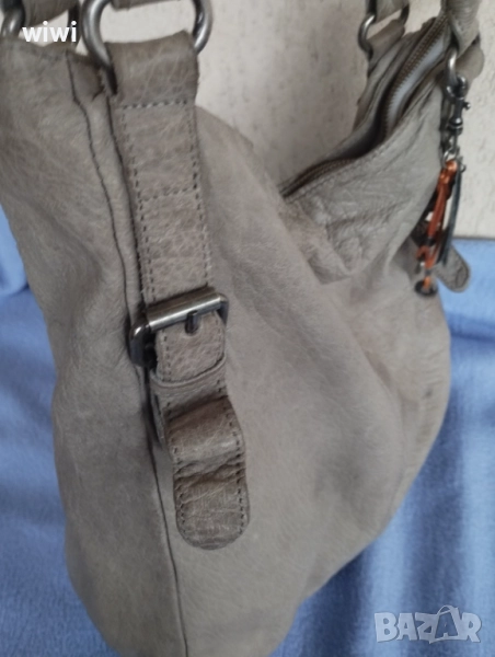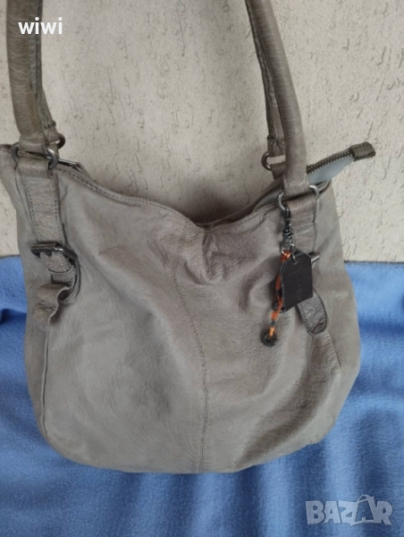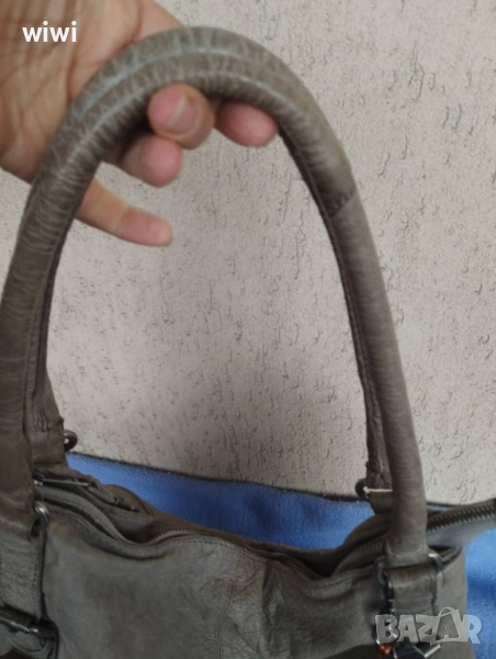 Чантата е използвана с нормални следи от употреба.Нямат скъсано,протрито или захабено.Сив цвят.Мека естествена кожа.Марката е скъпа и качествена.Височина 33,ширина 37см.Цена 50лв.