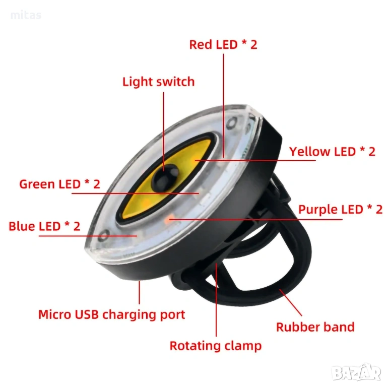- Режими на работа: 7 режима – постоянен + 6 мигащи режима