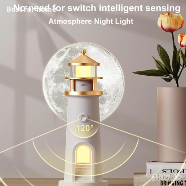 【Функция за автоматично засичане на светлина】Тази декорация с форма на фар има интелигентен сензор, който засича хора под ъгъл от 120°. Светлината се включва автоматично, когато някой се приближи, и се изключва 60 секунди след напускане на зоната. Така стаята ви винаги ще бъде със стилна и топла светлина.