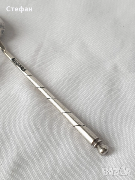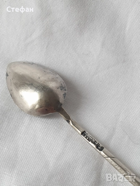 Сребърна лъжичка Царска Русия 1863 година в перфектно състояние, дължина - 11 см, сребро проба 84 / 875, тегло - 10.27 грама, маркировки.