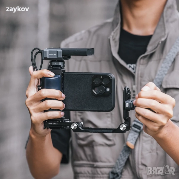 Сгъваемата полу-камера Falcam е съвместима с широка гама от фотоапарати, включително Sony,