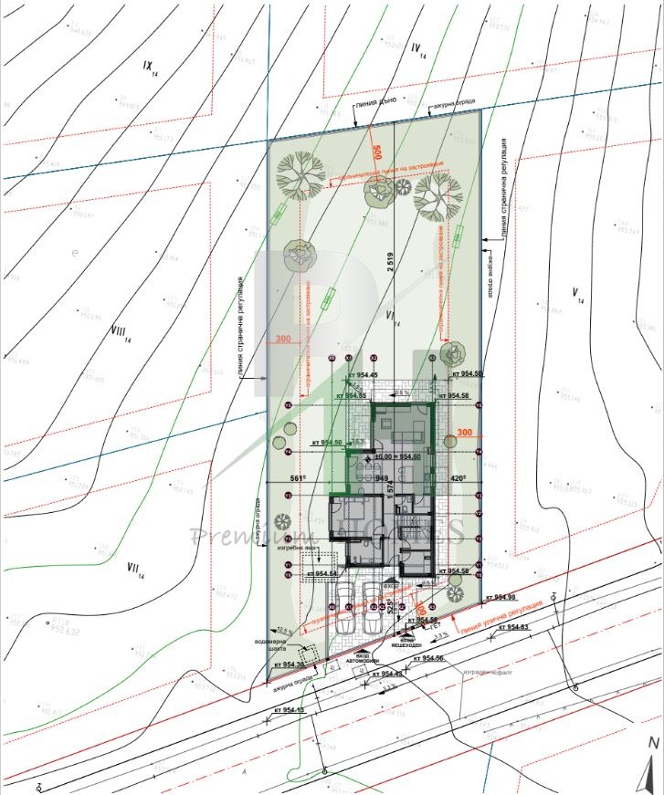 Двор: озеленен, с възможност за басейн и барбекю зона.
